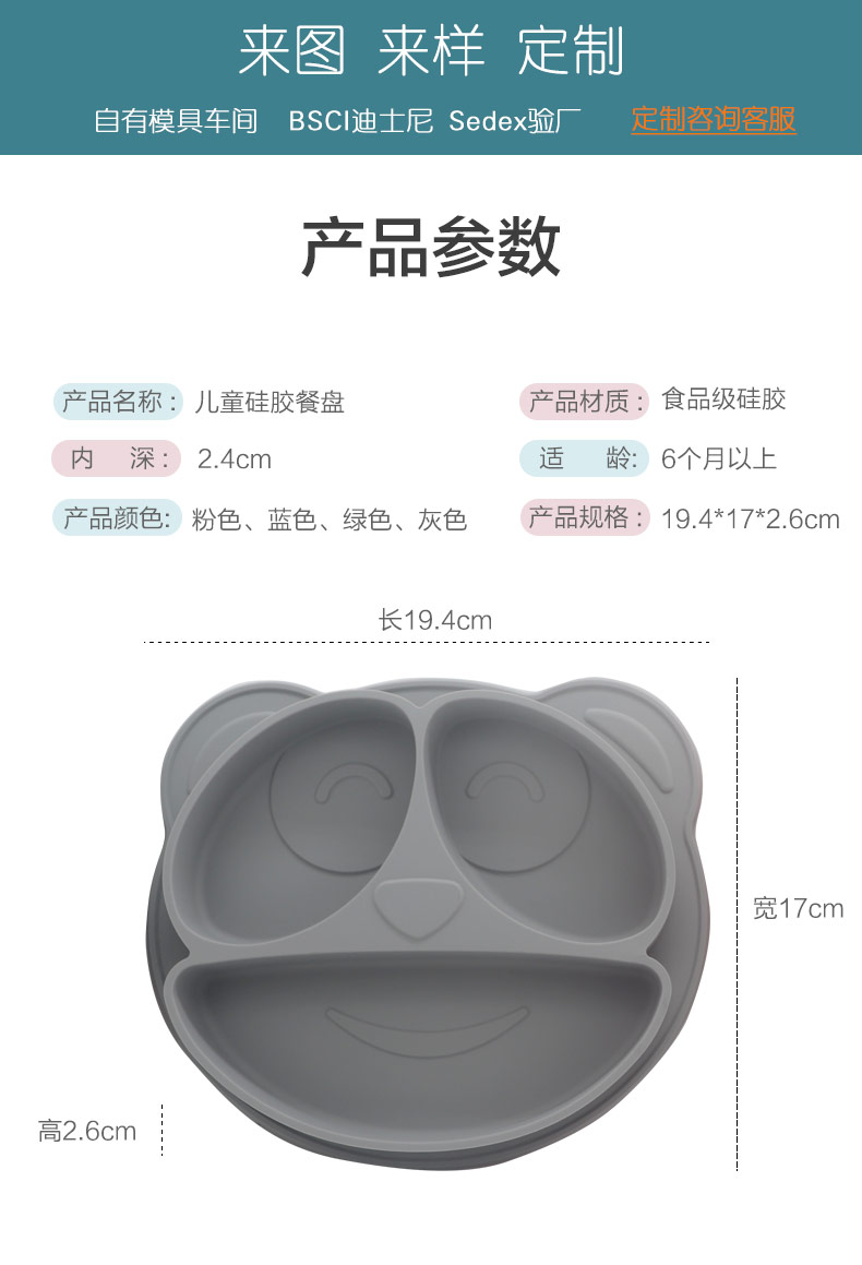 產(chǎn)品名稱(chēng):兒童一體式笑臉硅膠餐盤(pán)